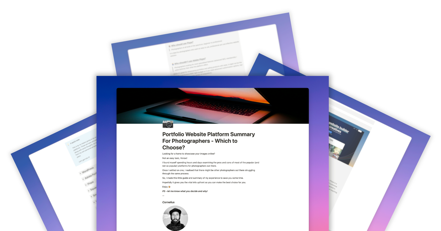 Looking for a home to showcase your images online?Not an easy task, I know!I found myself spending hours and days examining the pros and cons of most of the popular (and not so popular) platforms for photographers out there.Once I settled on one, I realised that there might be other photographers out there struggling through the same process.So, I made this little guide and summary of my experience to save you some time.Hopefully it gives you the vital info upfront so you can make the best choice for you.Enjoy 🍺